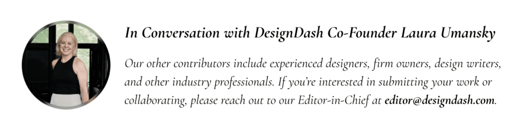 “A strong intern brings curiosity, initiative, and willingness to help. They support research, samples, vendor communication, studio organization, presentation prep, drafting if they have the skills. But the real purpose is exposure — helping them understand what a professional design studio looks and feels like.”